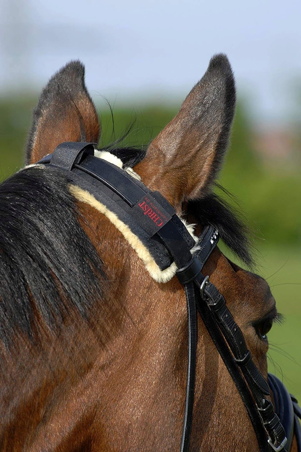 Ochraniacz na potylicę z prawdziwej skóry jagnięcej zapewnia wyjątkowo wygodne dopasowanie paska na szyję i jest idealny do użytku na turniejach.