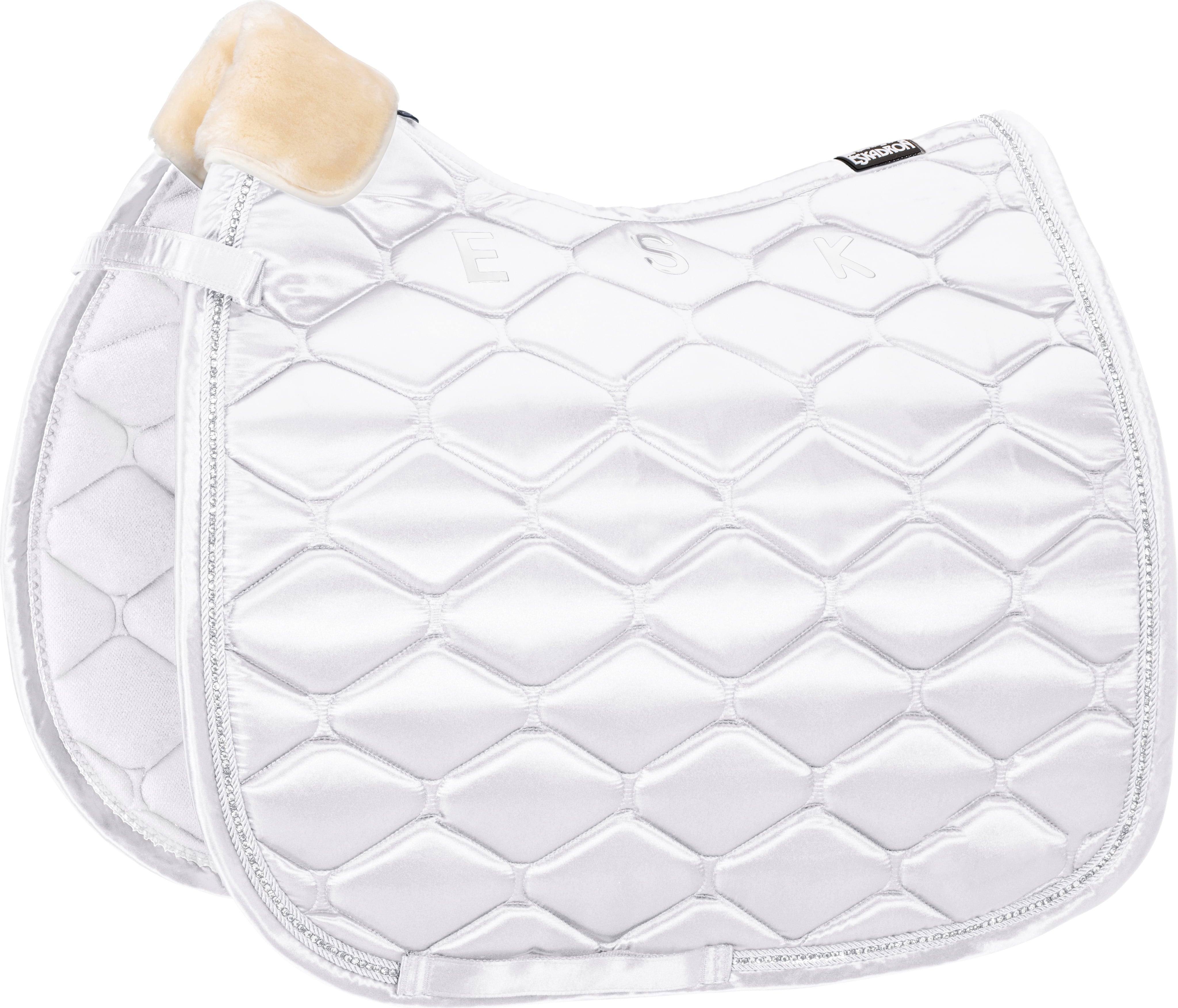 Odkryj czaprak Eskadron Satin Crystal – idealne połączenie eleganckiego wyglądu i praktycznego komfortu. Wysokiej jakości satynowa powierzchnia zapewnia lśniące wykończenie, a spód z materiału Cool-Dry gwarantuje przyjemny klimat pod siodłem. System InnoStrap to gwarancja pewnego mocowania z przodu, a odpinana wkładka z imitacji futra przy kłębie zwiększa komfort noszenia dla konia. Idealny na treningi i zawody, bez konieczności rezygnowania ze stylu.
