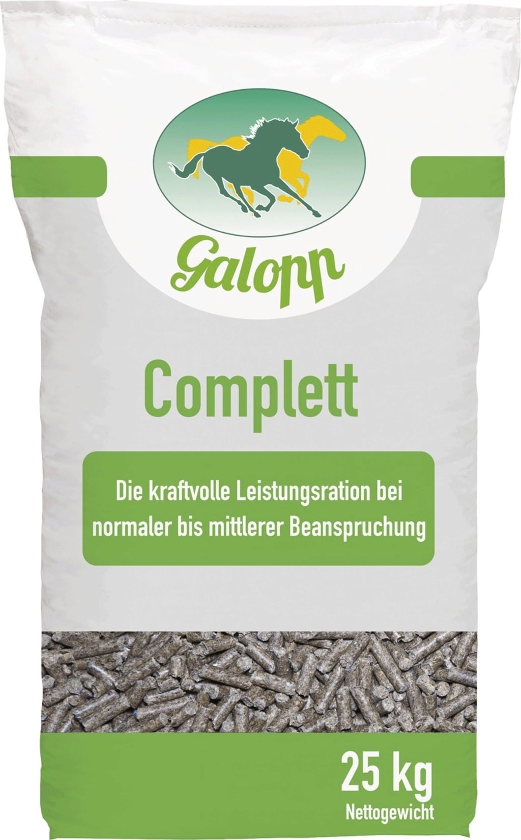 Galopp Complett jest idealny dla koni sportowych i rekreacyjnych, które są narażone na normalny lub średni stres. Dostarcza koniowi energii, białka, minerałów i witamin. Granulat zapewnia optymalną podaż składników odżywczych, a tym samym ma pozytywny wpływ na wydajność, dobre samopoczucie i zdrowie czworonożnego przyjaciela.