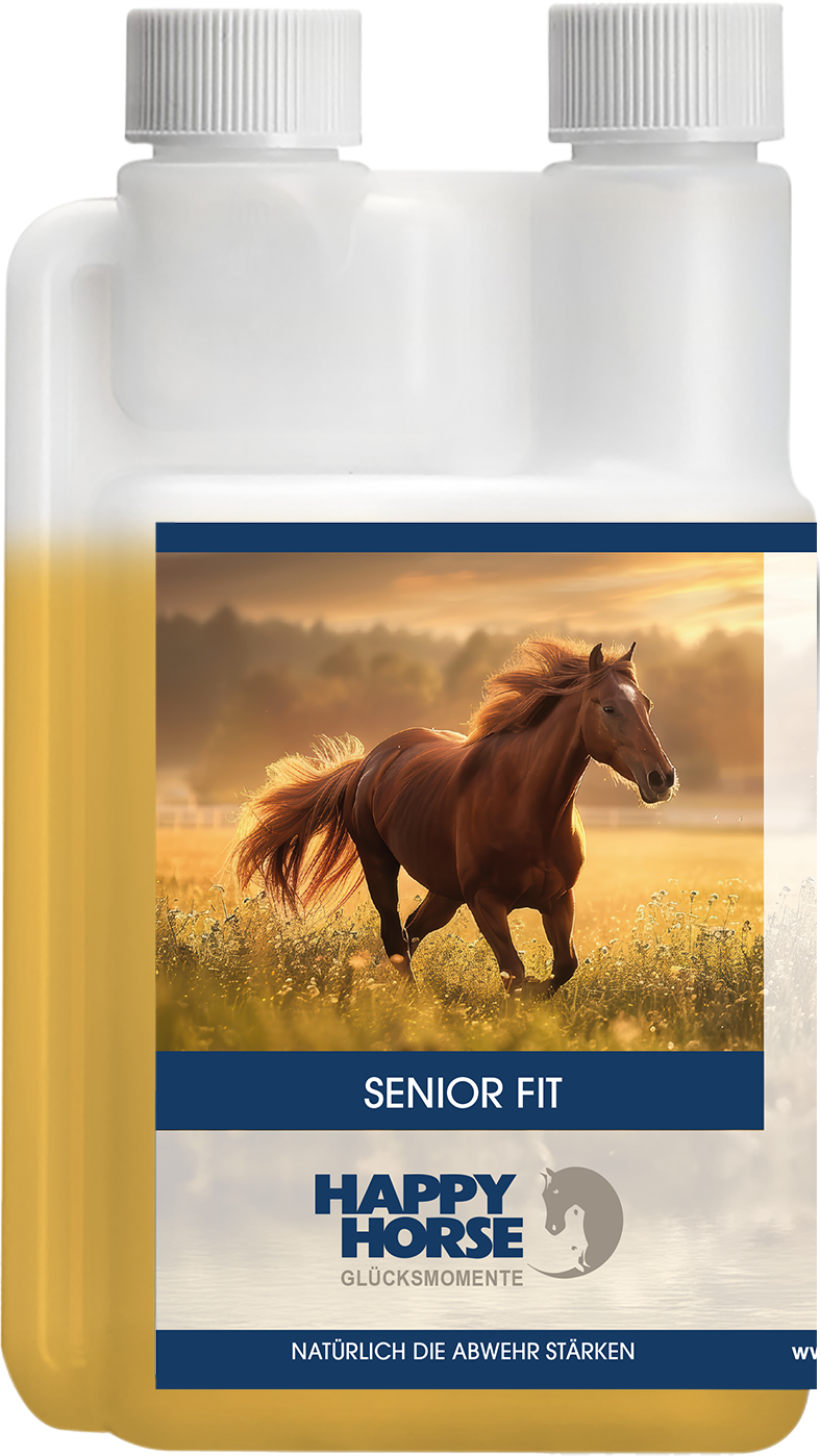 Happy Horse Liquid Senior Fit jest specjalnie dostosowany do potrzeb starszych koni. Płynna formuła ułatwia przyjmowanie składników odżywczych - prosta i praktyczna w podawaniu.
