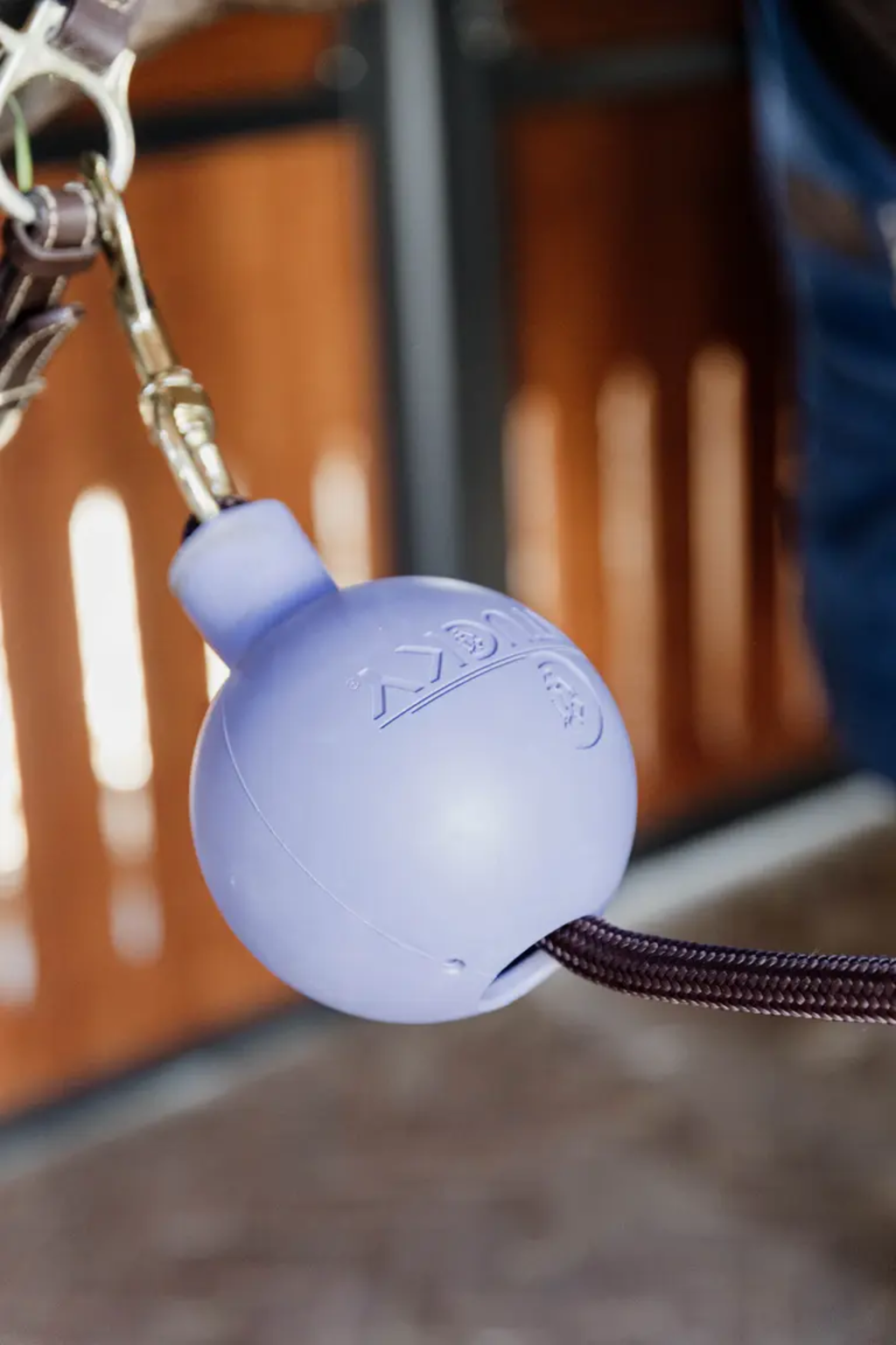 Zmniejsz ryzyko obrażeń podczas przywiązywania konia podczas pielęgnacji. Gumowa kulka do liny zapobiega możliwemu ryzyku splątania i żucia liny.