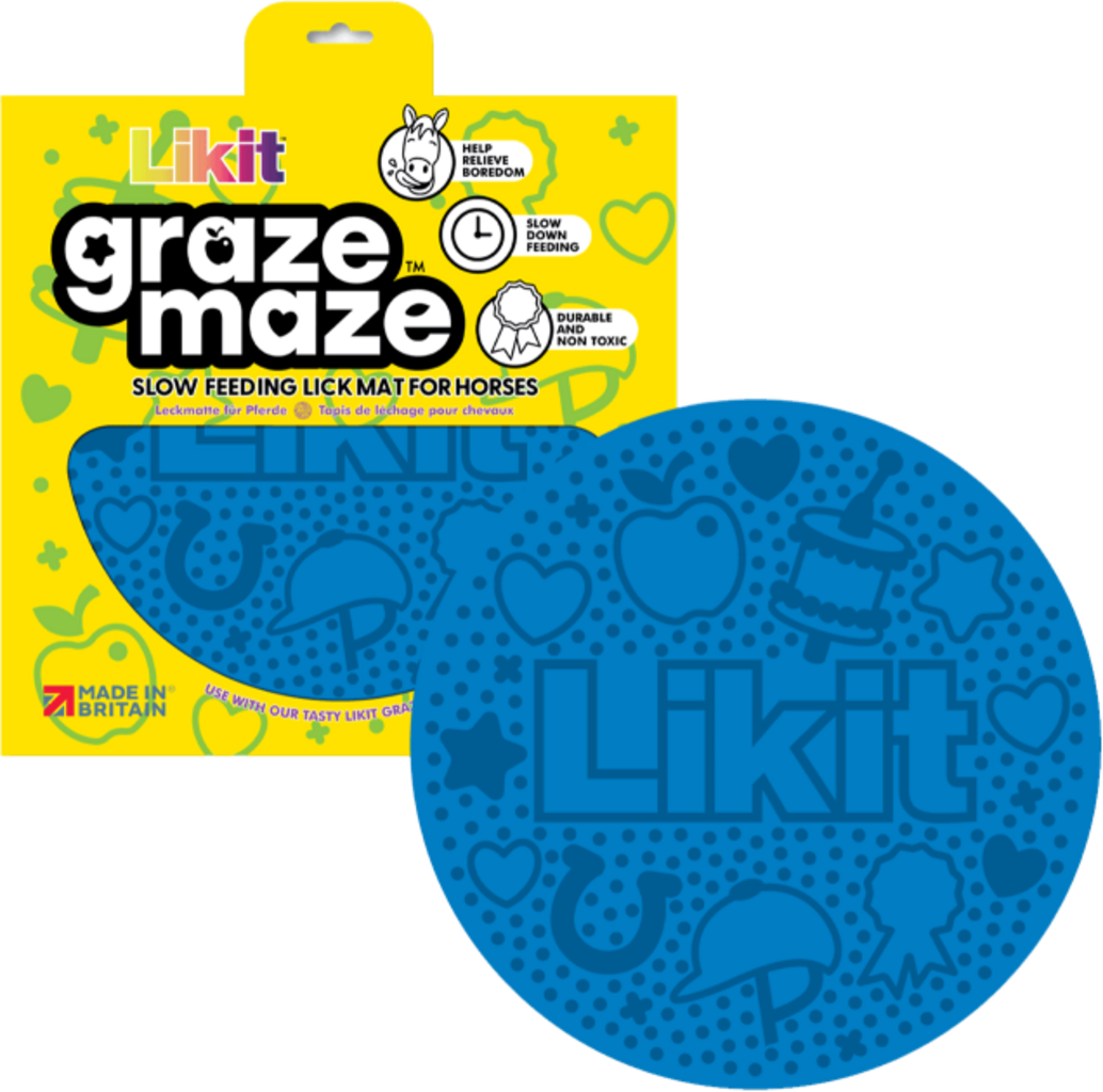 Dzięki Likit Graze Maze możesz zaoferować swojemu koniowi pożyteczną aktywność w stajni lub na padoku. Matę do lizania można łatwo pokryć Pasta do Graze Maze, zacierem lub inną paszą i połączyć ją z kawałkami marchewki lub smakołykami w zależności od nastroju. W ten sposób zawsze możesz tworzyć nowe pomysły na małe pasze, aby zapewnić koniowi zajęcie i różnorodność.