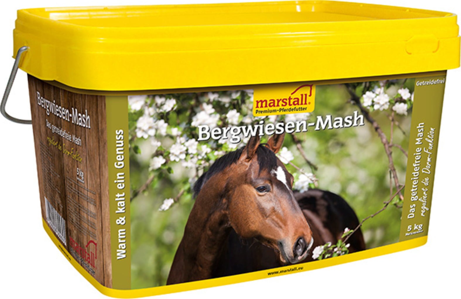 Mesz Górskie łąki marstall to bezzbożowa alternatywa dla klasycznego meszu. Wyprodukowana na bazie delikatnie suszonej na powietrzu sieczki w Allgäu. Z cennym śluzem. Drożdże piwne, aromatyczne naturalne zioła i smaczne wytłoki jabłkowe doskonale uzupełniają wysokiej jakości recepturę bezzbożowego produktu.