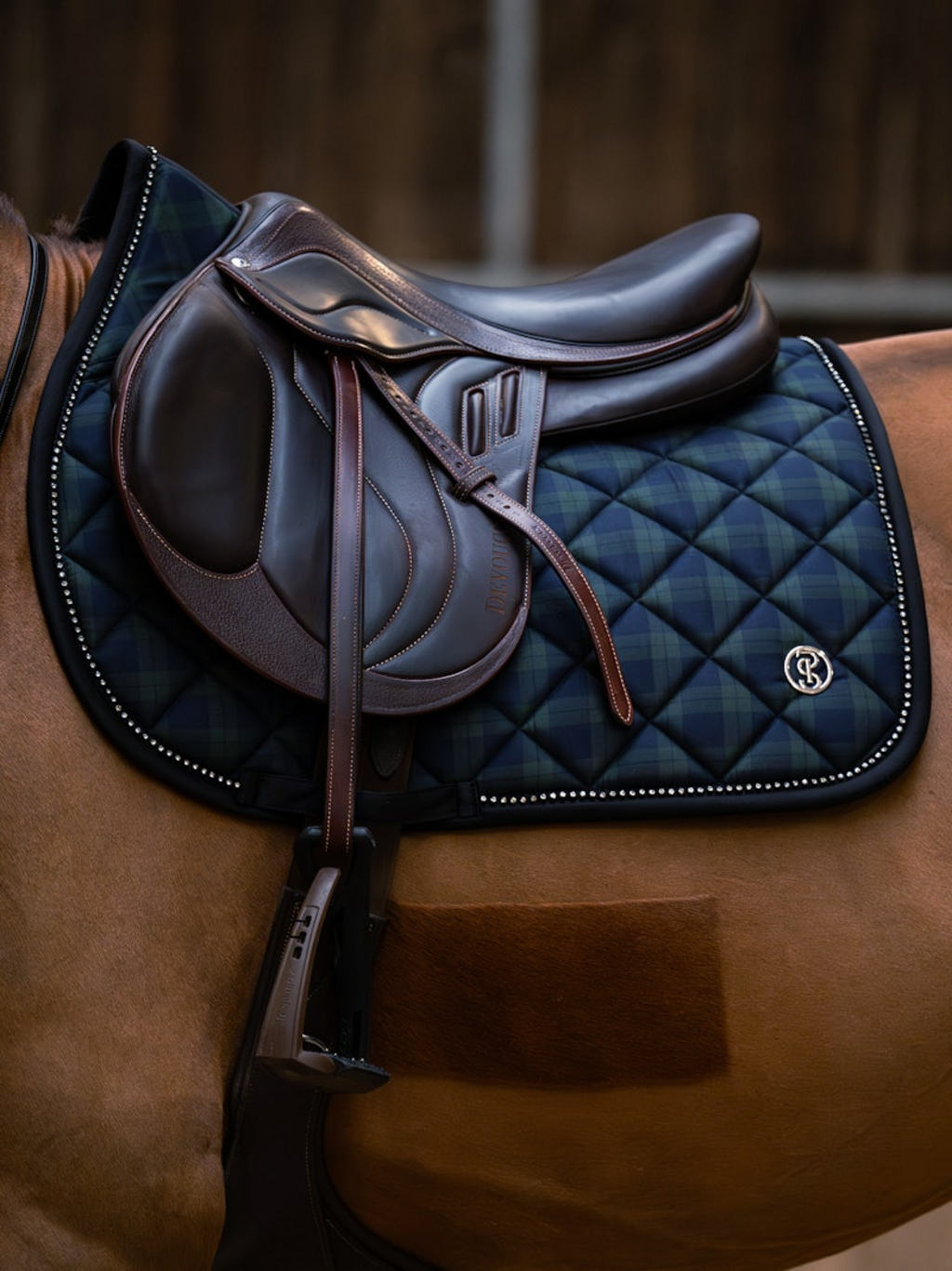 Z czaprakiem w kratkę Tartan Checked wniesiesz nutę tradycji i elegancji do swojej codziennej jazdy konnej. Klasyczny wzór w kratkę Tartan inspirowany jest słynną Czarną Strażą Królewskiego Pułku Szkocji i sprawia, że ten czaprak przyciąga wzrok na ujeżdżalni lub podczas treningu.