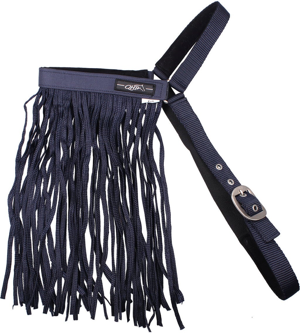 Trzymaj muchy i inne owady z dala od głowy konia - dzięki praktycznym frędzlom przeciw muchom od QHP. Ta wysokiej jakości maska przeciw owadom zachwyca wyrafinowanym designem: można jej łatwo używać bez kantara dzięki innowacyjnemu zapięciu na klamrę. Oznacza to, że koń jest zawsze dobrze chroniony przed irytującymi muchami, czy to na pastwisku, w otwartej stajni czy na przejażdżce.