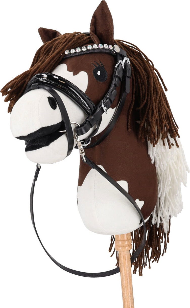 Absolutną atrakcją jest ozdobna opaska na czoło, która jest bogato zdobiona błyszczącymi kryształkami i dyskretnie świeci przy każdym ruchu. Dzięki tej uzdzie Hobby Horse z pewnością przyciągnie uwagę wszystkich i pomoże zaprezentować swoje umiejętności jeździeckie do perfekcji!