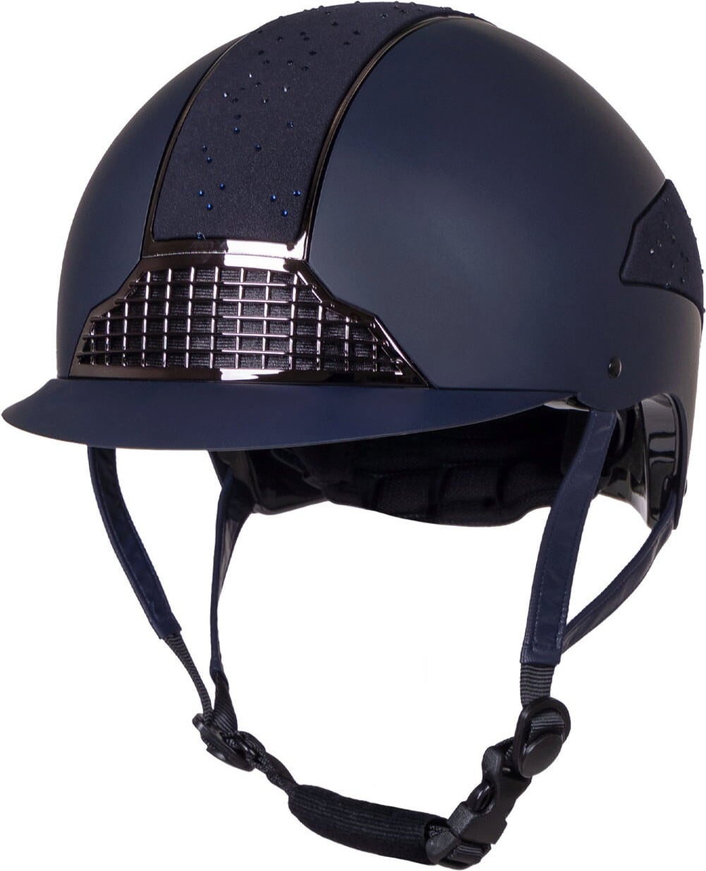 Kask jeździecki Ohio firmy QHP to bardzo wygodny i stylowy kask, który będzie Ci towarzyszył podczas treningów i zawodów. Zachwyca swoim efektownym wyglądem i błyszczącymi kryształkami zintegrowanymi w skorupie zewnętrznej. Skorupa ta została wykonana z różnych wysokiej jakości materiałów i nadaje kaskowi elegancki wygląd. Pomimo swojej solidnej konstrukcji, kask jest bardzo lekki.