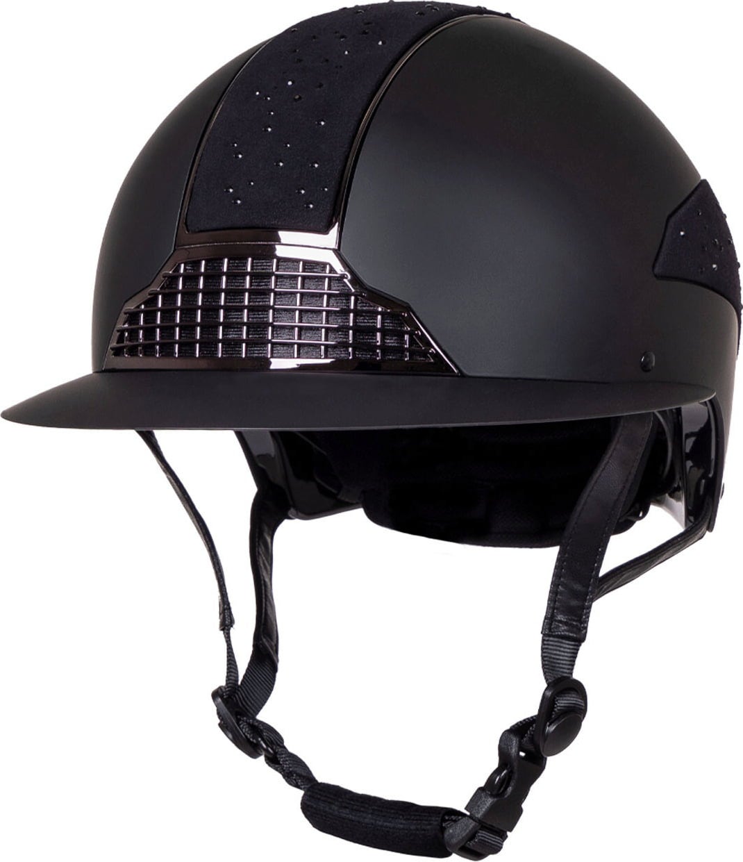 Kask jeździecki Ohio od QHP to bardzo wygodny i przyciągający wzrok kask, który nie pozostawia nic do życzenia. Jego stylowy wygląd tworzy zewnętrzna powłoka, która została wysadzana błyszczącymi kryształkami, dzięki czemu przyciąga wzrok. Daszek polo nie tylko nadaje kaskowi szyku, ale także gwarantuje optymalną widoczność nawet w pełnym słońcu. Zadbano o Twój komfort: zintegrowana siatka wentylacyjna utrzymuje głowę w przyjemnym chłodzie.