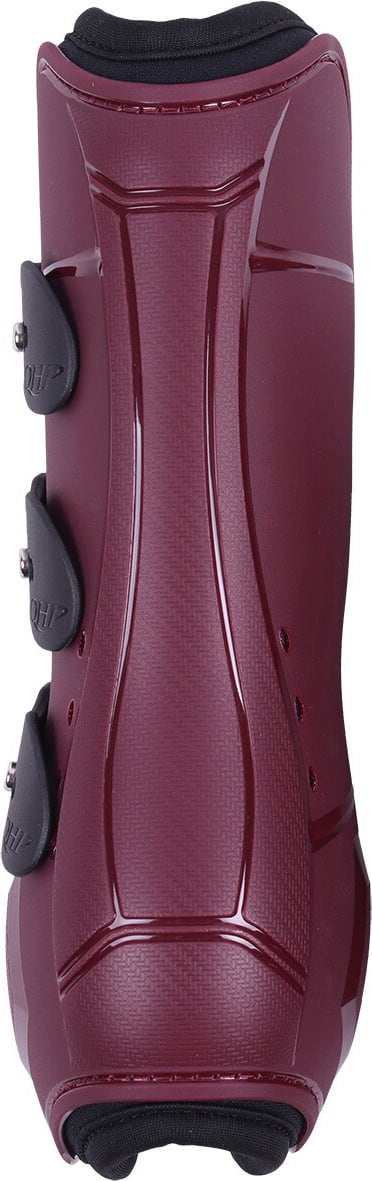 Te sportowe ochraniacze z twardą skorupą w eleganckim kolorze bordo zostały zaprojektowane, aby niezawodnie chronić ścięgna tylnych nóg konia przed uderzeniami i wstrząsami. Dzięki inteligentnej technologii materiałowej oferują idealne połączenie maksymalnej ochrony i efektywnego zarządzania ciepłem.