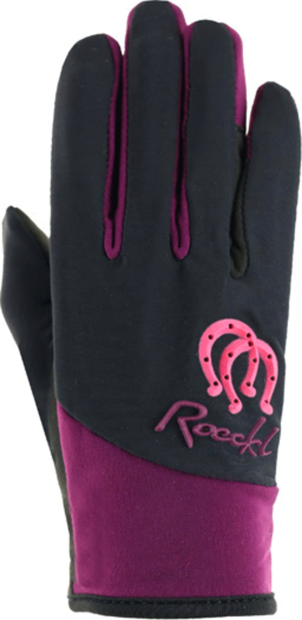 - Nadruk podkowy i logo Roeckl Sports na grzbiecie dłoni