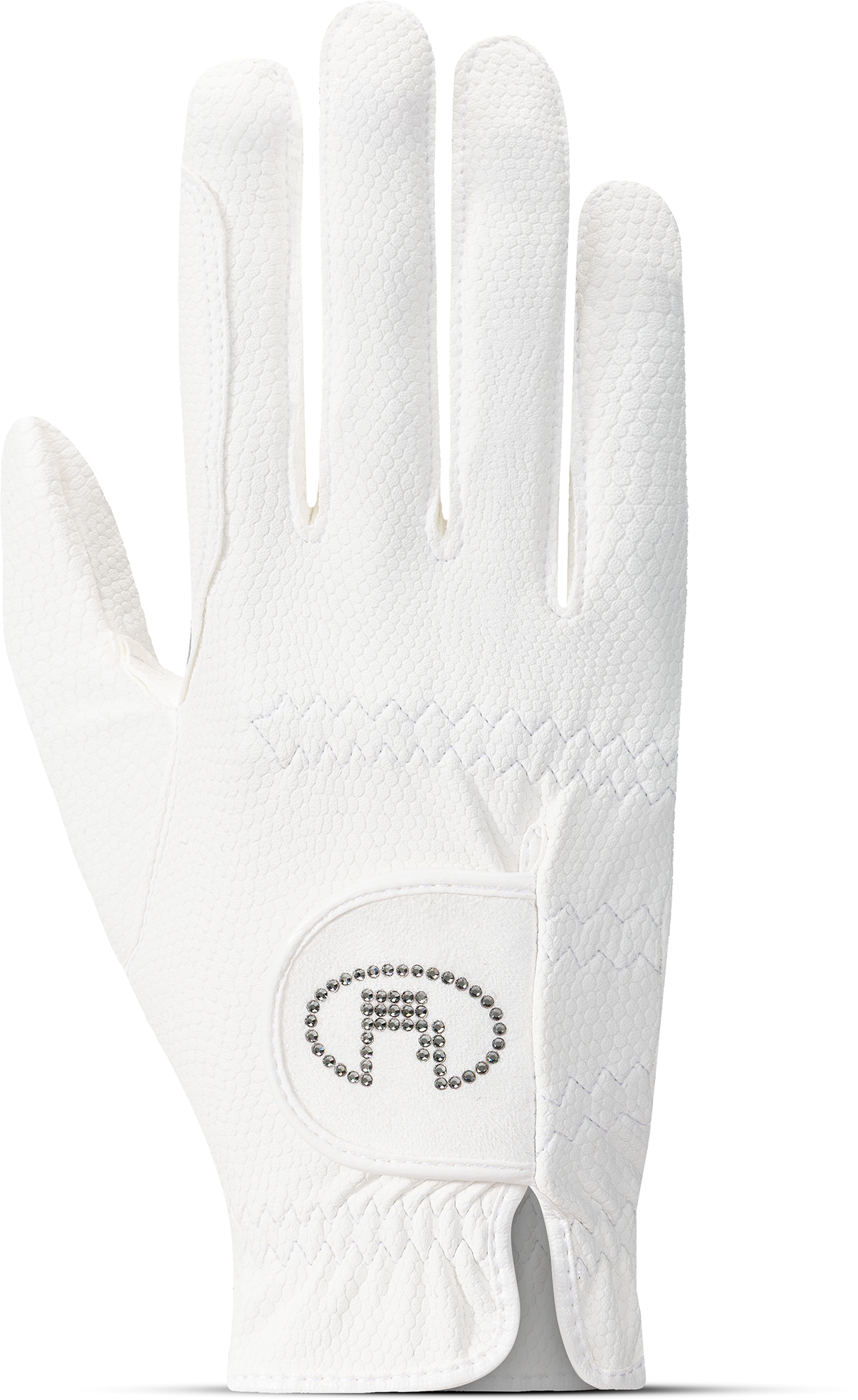 Rękawiczki są idealną symbiozą funkcjonalności i designu. Zachwycają nie tylko lśniącą ręką ROECKL wykonaną z kryształów Swarovskiego na pasku, ale także przekonującymi właściwościami materiału na całej powierzchni. Dzięki ekskluzywnemu syntetycznemu zamszowi ROECK-GRIP®, rękawiczki są wyjątkowo oddychające, a także mają idealne dopasowanie oraz stabilny i czuły uchwyt na wodzach.