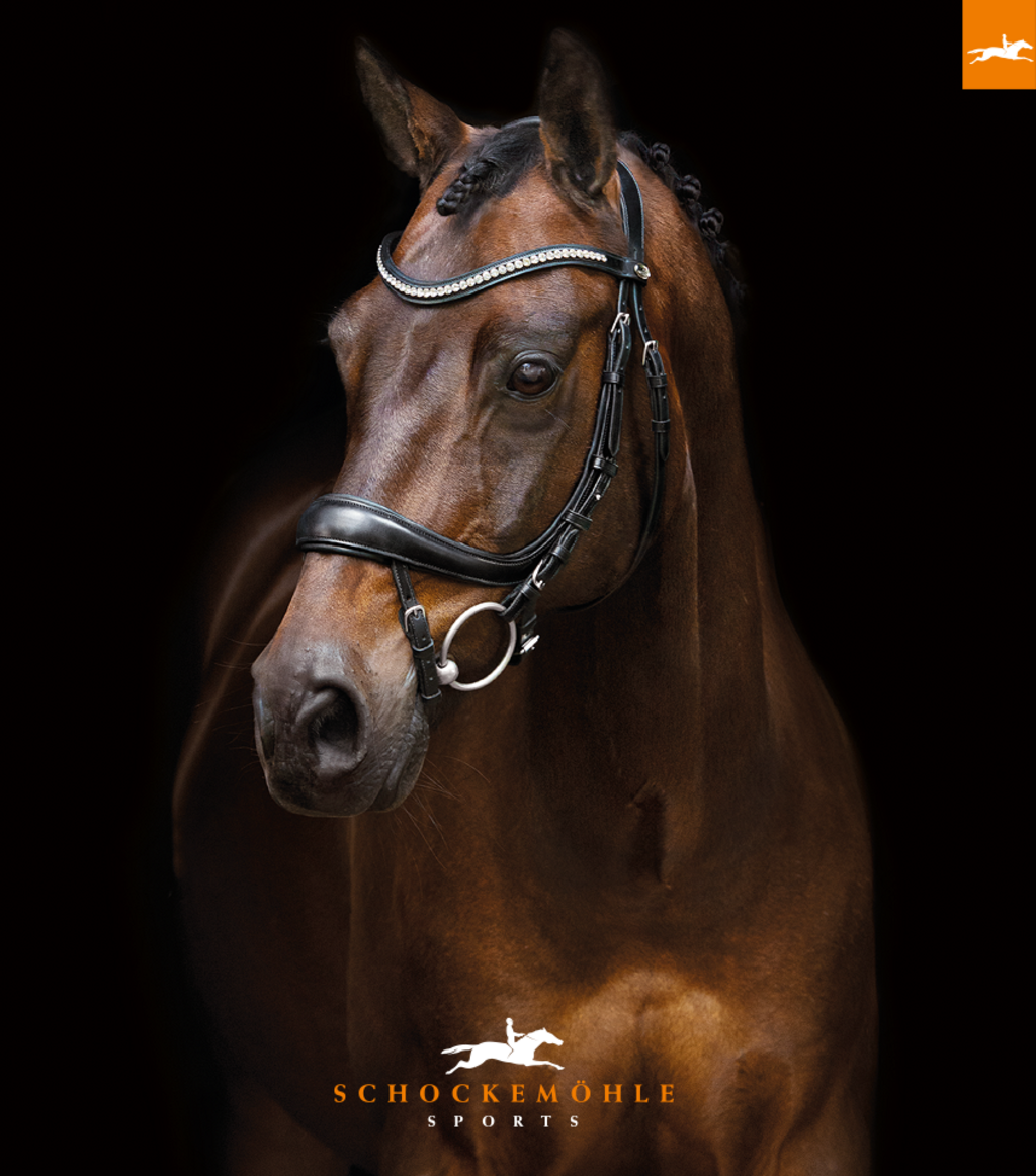 To anatomicznie zaprojektowane ogłowie ujeżdżeniowe z szerokim nachrapnikiem nadaje koniowi efektowny wygląd. Miękko wyściełany naczółek zapewnia dużą swobodę ruchu uszu. Bardzo szeroki naczółek, ozdobiony okrągłymi kryształkami, odciąża oczy i uszy. Wygięty nachrapnik omija wrażliwy nerw twarzowy. Przesunięty pasek zapobiega uciskowi jamy nosowej, umożliwiając koniowi swobodne oddychanie.