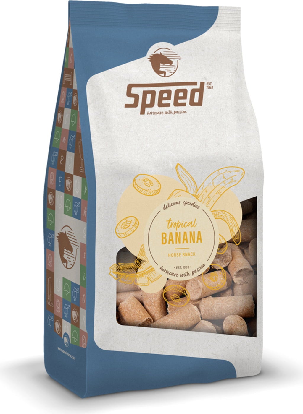 Słodki aromat i pyszny bananowy smak szybko sprawią, że ta przekąska stanie się ulubionym przysmakiem Twojego konia. W porównaniu z marchewką czy jabłkami, pyszne speedies SPEED mają również znacznie dłuższy termin przydatności i nie kruszą się jak np. suchy chleb. Łatwe w przechowywaniu i szybko dostępne, speedies są bardzo praktyczne. To wyjątkowa pasza uzupełniająca, która jest wyjątkowym sposobem, aby po prostu podziękować Twojemu ukochanemu koniowi.