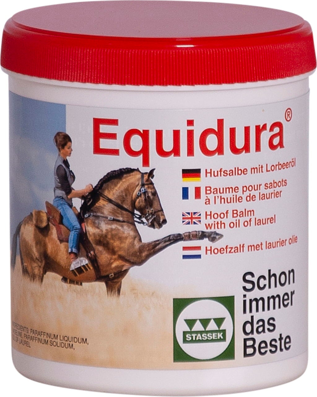 Niezależnie od tego, czy róg kopytowy jest zbyt miękki czy zbyt twardy, EQUIDURA Maść do kopyt reguluje wilgotność rogu każdego kopyta. Ta maść z olejem laurowym i innymi wysoce skutecznymi składnikami odżywczymi poprawia elastyczność rogu kopytowego i utrzymuje go w zdrowiu. Equidura nie tylko pozostaje jako warstwa na powierzchni kopyta, ale także wnika głęboko w ścianę kopyta i wzmacnia kopyto od wewnątrz. Róg kopytowy pozostaje oddychający.