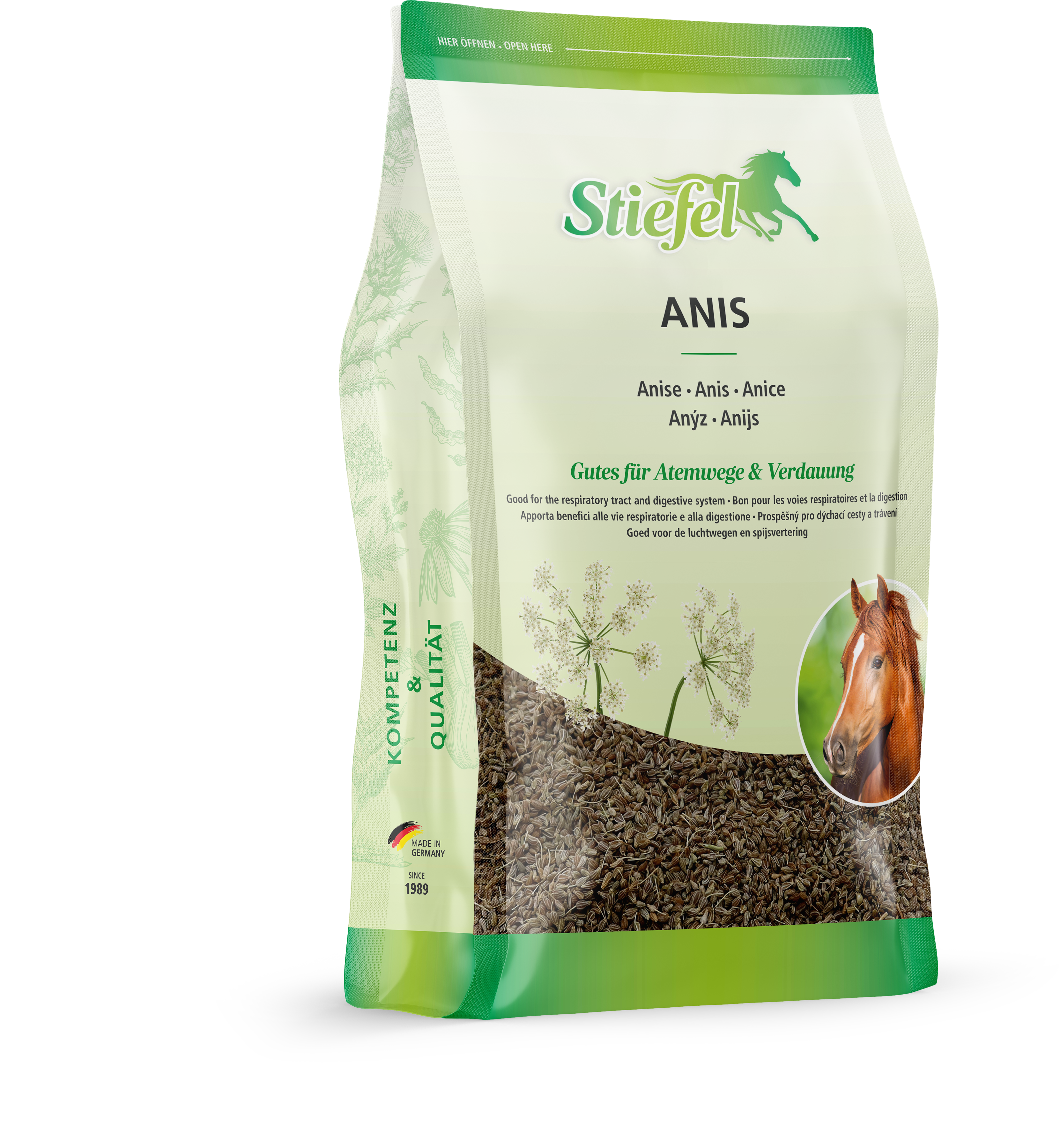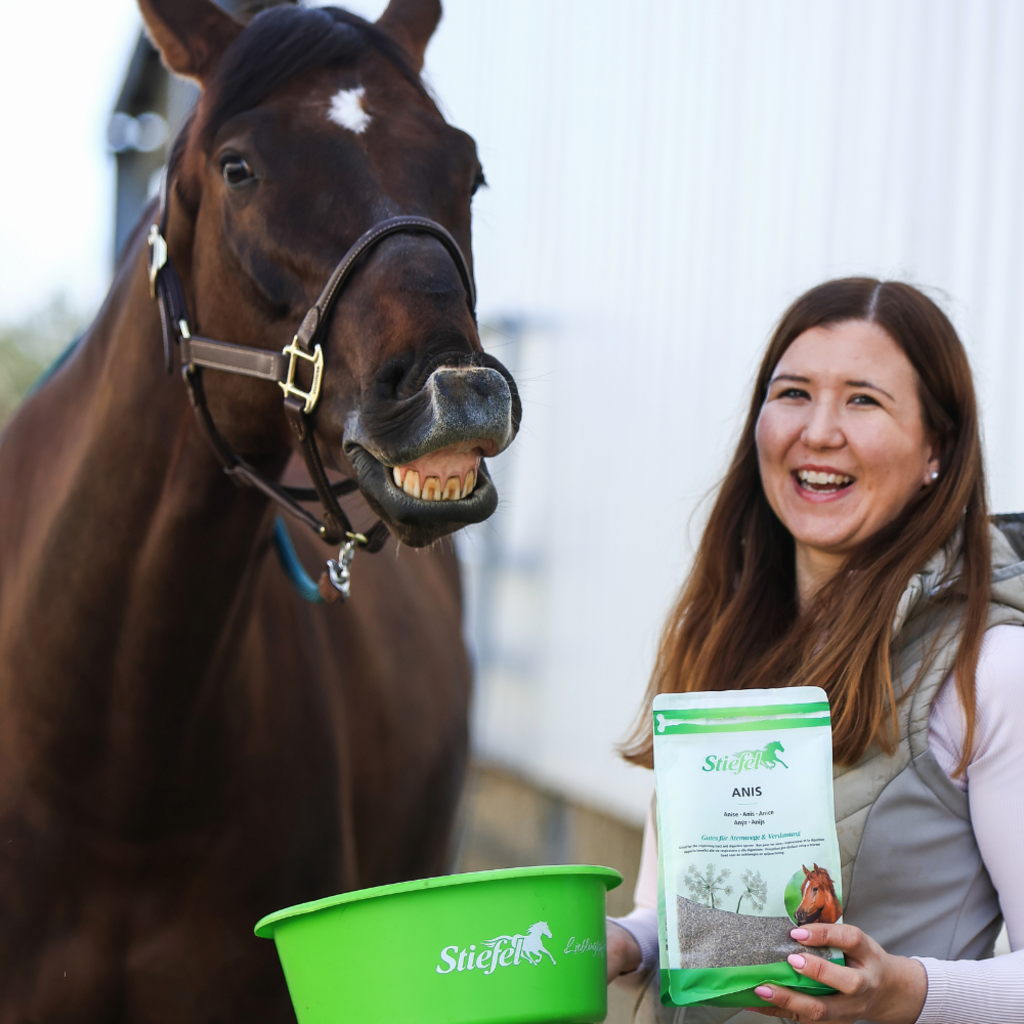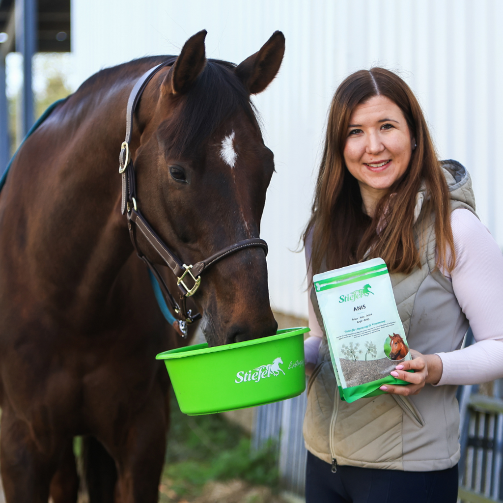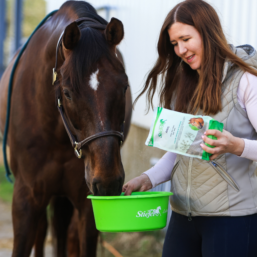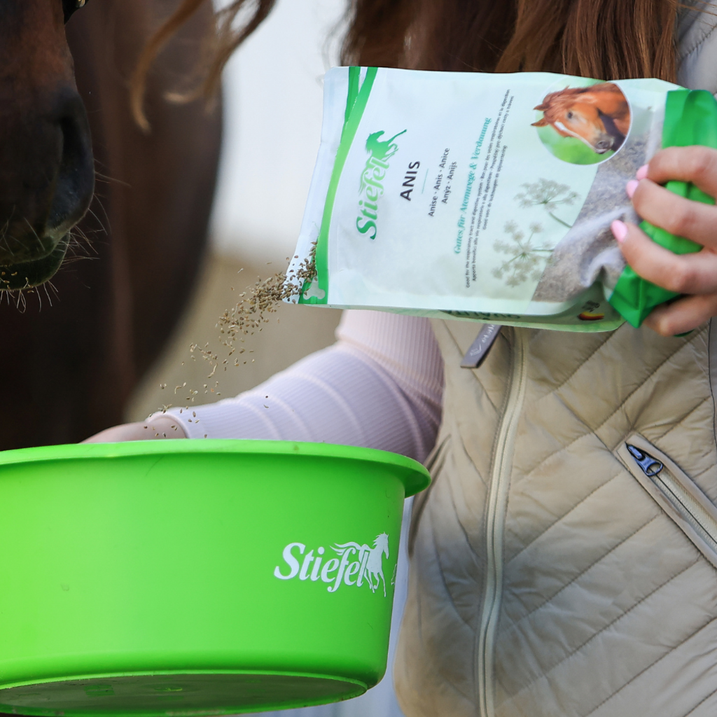 Anyż pochodzi z regionu Morza Śródziemnego i ma szeroki zakres działania na organizm. Anyż Stiefel może wspierać układ oddechowy i trawienny konia. Kaszel może zostać złagodzony, a zablokowana flegma poluzowana. Anyż Stiefel może również łagodzić skurcze i wzdęcia w dolegliwościach żołądkowo-jelitowych. Ruch jelit i soki trawienne mogą również powrócić do normy. Anyż może w ten sposób przyczynić się do zdrowego trawienia.