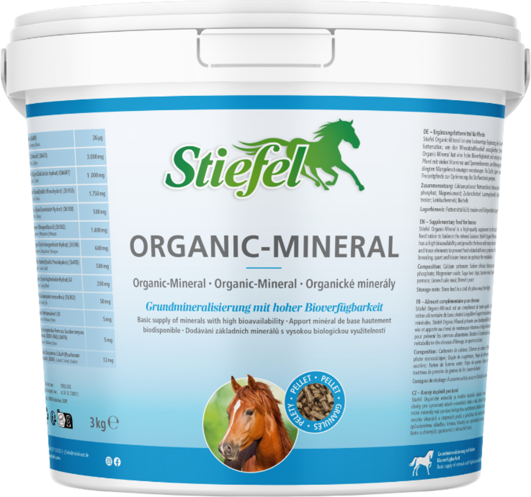 Organic-Mineral Stiefel to optymalny, niezawierający zbóż dodatek do podstawowej dawki pokarmowej, który zapobiega objawom niedoboru paszy. Ponieważ Organic-Mineral Stiefel nie zawiera zbóż, nadaje się również dla koni z problemami metabolicznymi.