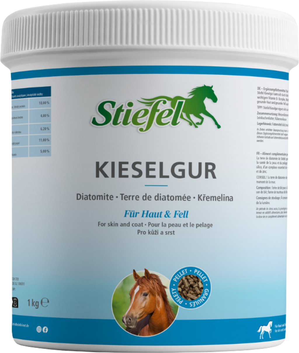 Dzięki połączeniu krzemionki, niezbędnych witamin z grupy B, aminokwasów zawierających siarkę i cynku, ziemia okrzemkowa Stiefel może mieć pozytywny wpływ na skórę i sierść w przypadku wystąpienia objawów niedoboru żywieniowego, a jej skład jest również idealny podczas zmiany sierści. Wtedy organizm konia jest narażony na wysoki poziom stresu, dlatego pomocne może być dokarmianie ziemią okrzemkową.