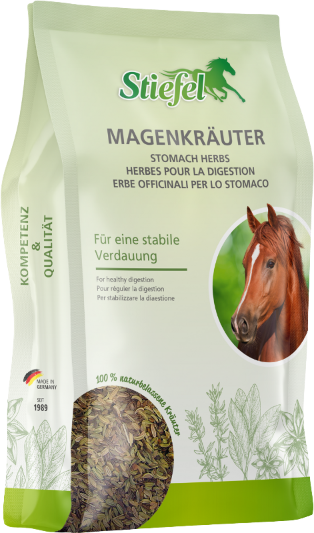 Zioła na żołądek Stiefel to specjalnie dobrana mieszanka ziół stabilizująca żołądek konia. Zawarte zioła mogą łagodzić skurcze żołądka i wzdęcia oraz pozytywnie wpływać na zaparcia i biegunki. Substancje zawarte w ziołach mogą łagodzić skurcze, pobudzać apetyt konia, a także pozytywnie wpływać na trawienie. Zioła na żołądek Stiefel są zalecane dla koni z problemami żołądkowymi i trawiennymi. Zioła Stiefel można podawać zarówno zapobiegawczo, jak i w potrzebie. Szczególnie polecane jest stosowanie jako herbata. Aby to zrobić, zalać zioła gorącą wodą i pozostawić do ostygnięcia. Następnie zalać paszę naparem z ziołami.