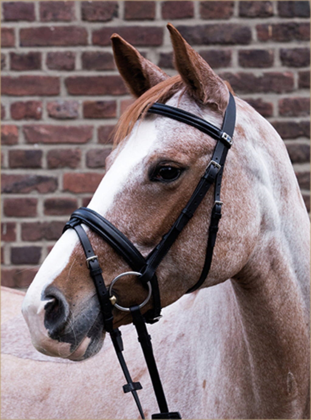 To klasyczne ogłowie charakteryzuje się szerokim krojem i srebrnymi okuciami. Miękko wyściełany naczółek i nachrapnik zapewniają wysoki poziom komfortu.
