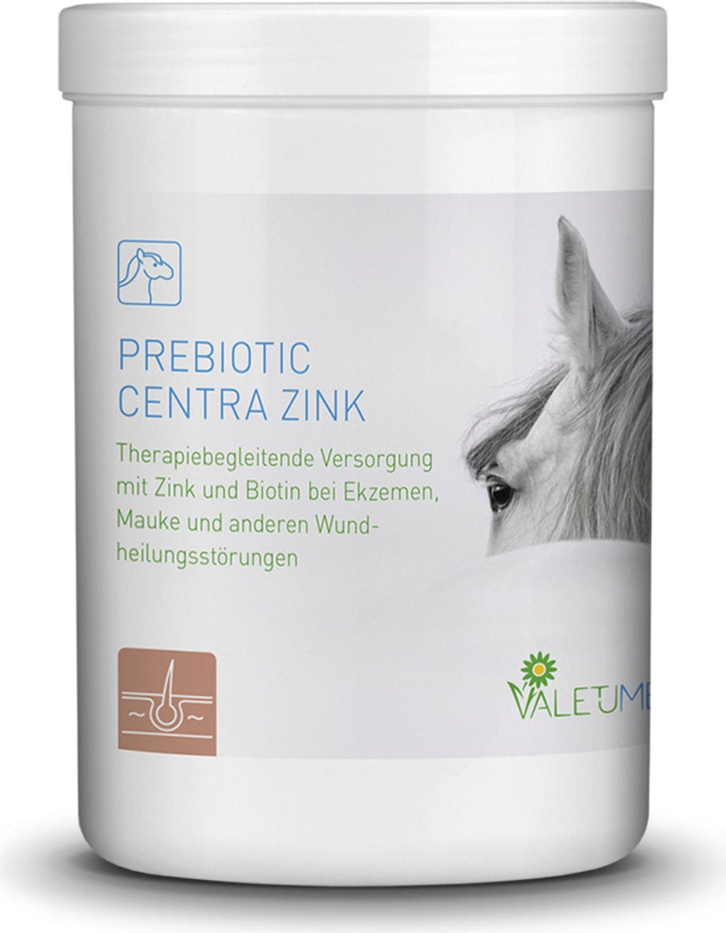 Valetumed Prebiotic Centra Zink to wysokiej jakości mieszanka paszowa uzupełniająca, która celowo wzbogaca codzienną dietę konia w cynk i biotynę. Stanowi wartościowy wkład w równowagę składników odżywczych – szczególnie w wymagających okresach, takich jak wymiana sierści.