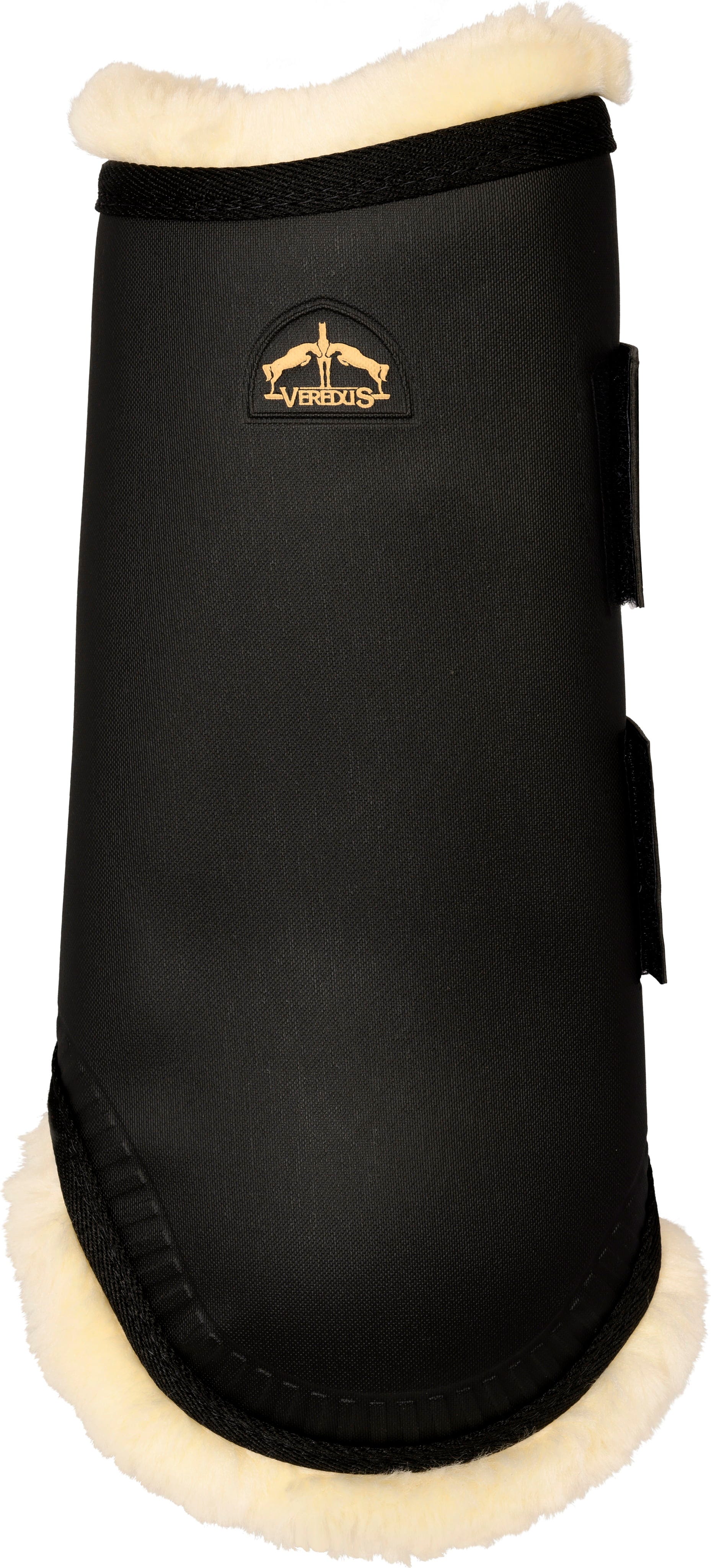 Szczególną cechą tego modelu jest wyściółka Techno Sheepskin na całej długości. Ta sztuczna skóra jagnięca miękko przylega do tylnej części ciała, zapobiega tarciu i wygląda absolutnie elegancko. Szerokie 50 mm elastyczne paski z mocnym zapięciem na rzep zapewniają, że ochraniacze pozostają na swoim miejscu nawet podczas dynamicznych ruchów na lonży lub w karuzeli, zapewniając bezpieczne trzymanie i indywidualną regulację. Dzięki tej włoskiej jakości otrzymujesz trwałego i stylowego towarzysza do codziennej pracy z koniem bezpośrednio w stajni.