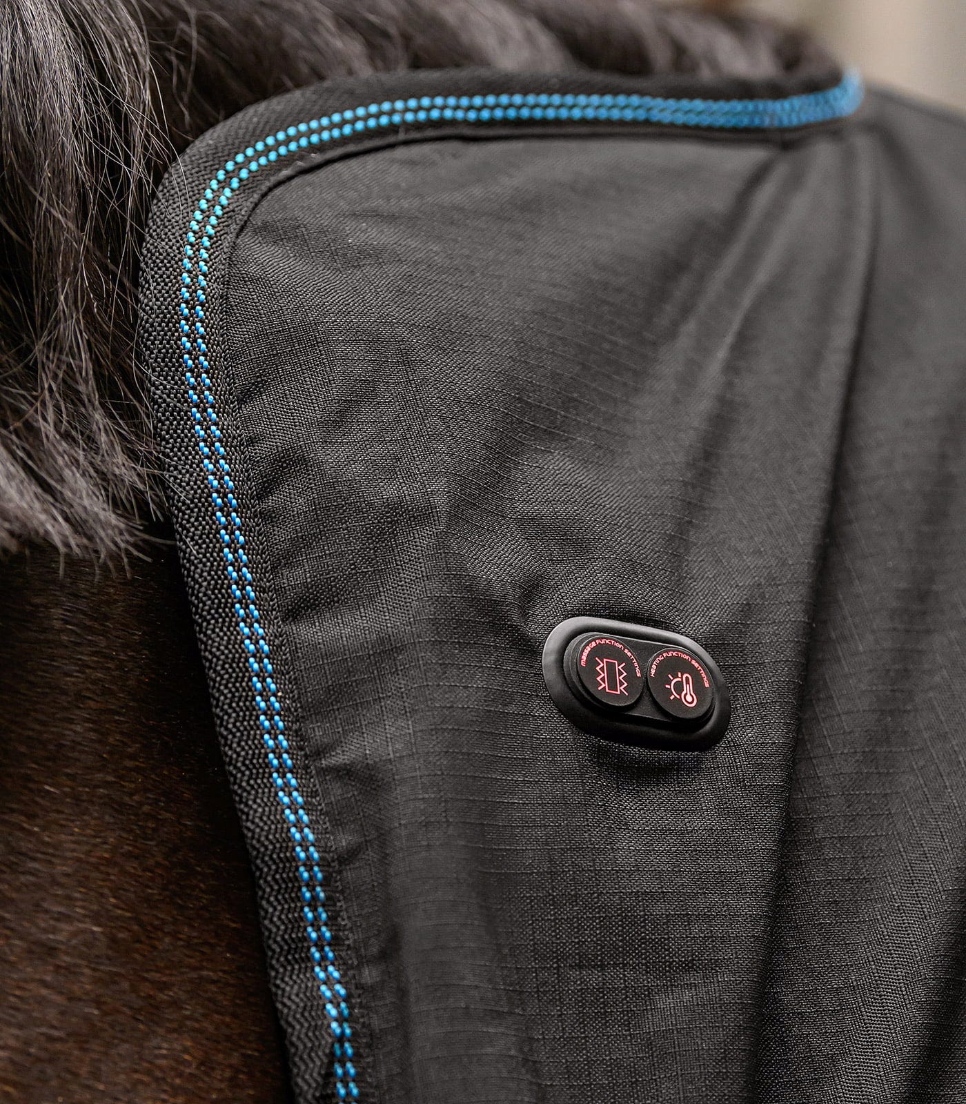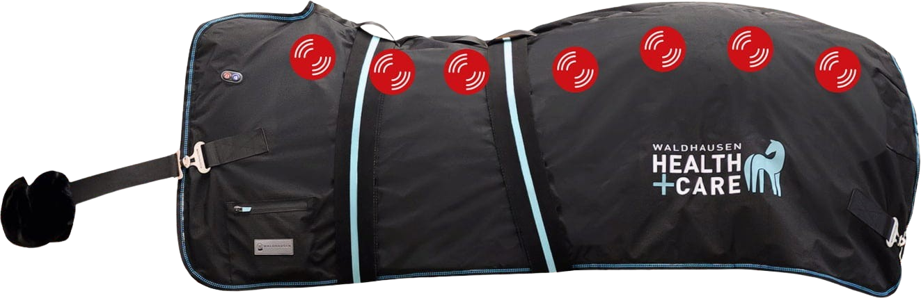 Derka grzewczo-masująca Waldhausen Health + Care TecSupreme oferuje modułowy system do ukierunkowanego wsparcia mięśni oraz regeneracji Twojego konia. Każda strona derki wyposażona jest w niezależny system grzewczy oraz siedem zintegrowanych głowic masujących, przy czym obie strony mogą być sterowane całkowicie niezależnie od siebie. Materiał zewnętrzny z tkaniny 600D Ripstop sprawia, że derka jest wyjątkowo wytrzymała i nadaje się do codziennego użytku w stajni.