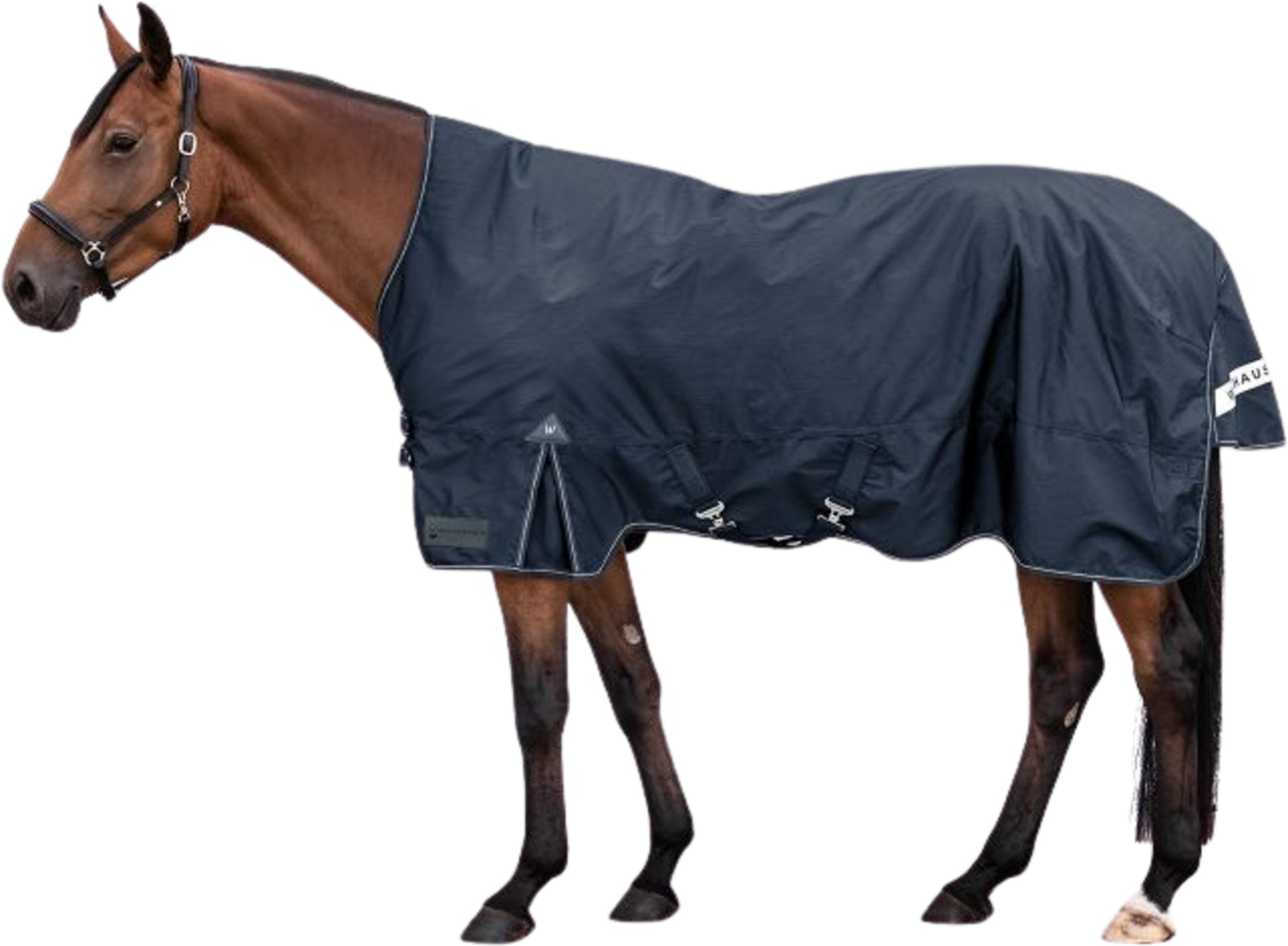 Możesz polegać na idealnym dopasowaniu: Podwójne przednie zapięcia w kształcie litery T są wyposażone w osłonę na rzep, która wraz z regulowanymi paskami krzyżowymi zapobiega ich zsuwaniu się. A na ciemną porę roku: odblaskowe detale na wiązaniu i klapie na ogon zwiększają widoczność konia!