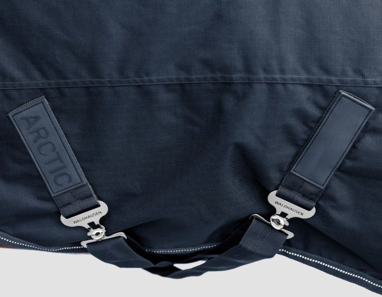 Potrzebujesz niezawodnej ochrony przed warunkami atmosferycznymi dla swojego konia? W takim razie derka Waldhausen Arctic Light to Twój nowy ulubieniec! Dzięki wytrzymałemu materiałowi ripstop 600 denier jest solidna, wodoodporna i oddychająca! Lekka konstrukcja i antybakteryjna podszewka gwarantują maksymalny komfort, pozwalając koniowi na swobodne poruszanie się. Klin jest wycięty w taki sposób, że pozwala na każdy ruch, zarówno na pastwisku, jak i na padoku.
