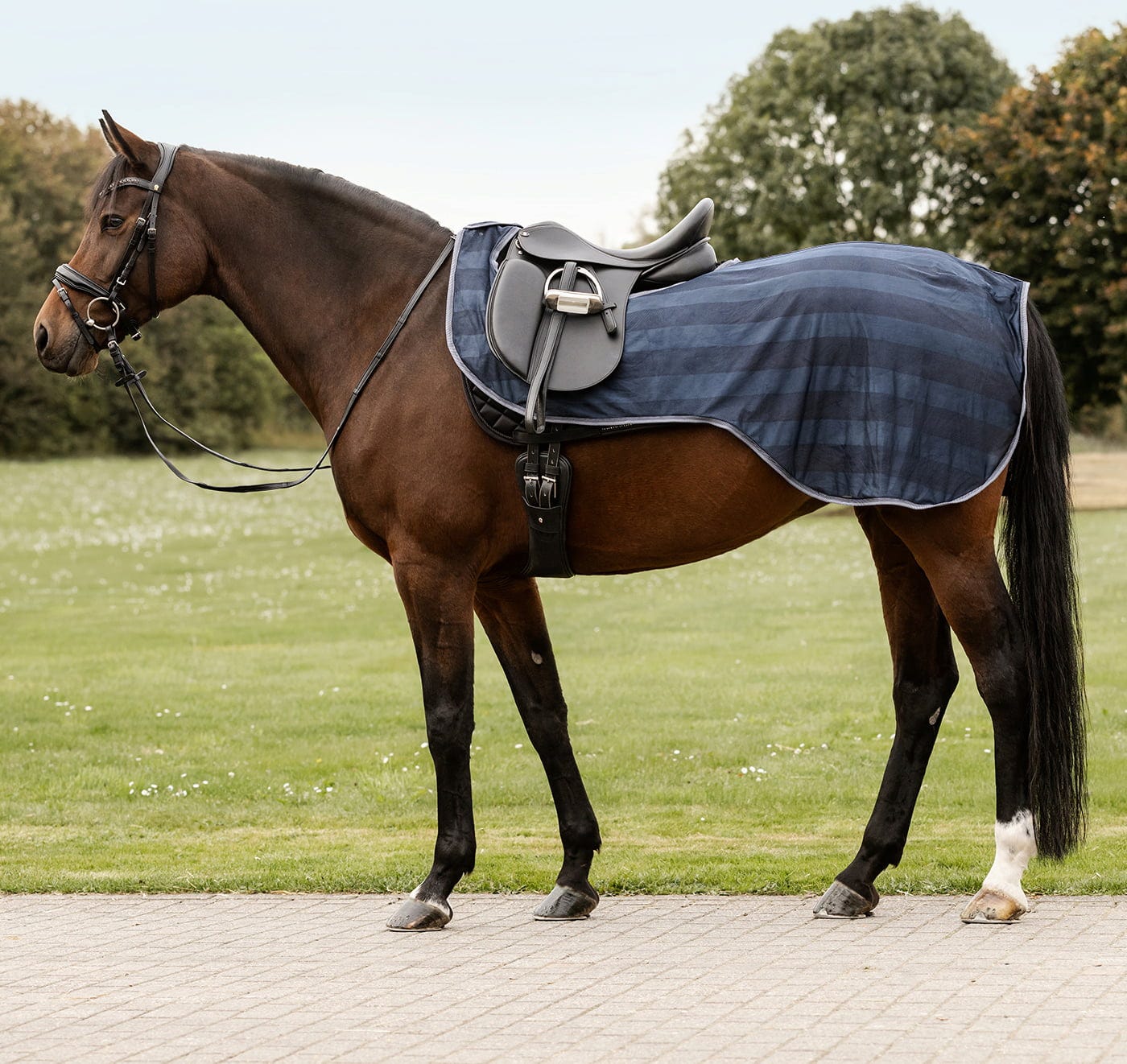 Dzięki bocznemu wycięciu noga pozostaje w bliskim kontakcie z koniem, a lekka tkanina zapewnia doskonałą cyrkulację powietrza. Zintegrowany kaptur można w razie potrzeby łatwo zamocować, chroniąc w ten sposób również wrażliwe okolice szyi przed ukąszeniami i niepokojem. Dzięki praktycznemu zapięciu na rzep w okolicy klatki piersiowej i stabilnemu sznurkowi pod ogon, wszystko pozostaje bezpiecznie na swoim miejscu nawet w wyższych chodach. Idealny wybór dla osób jeżdżących konno, które cenią funkcjonalność i bezkonkurencyjny stosunek ceny do jakości.