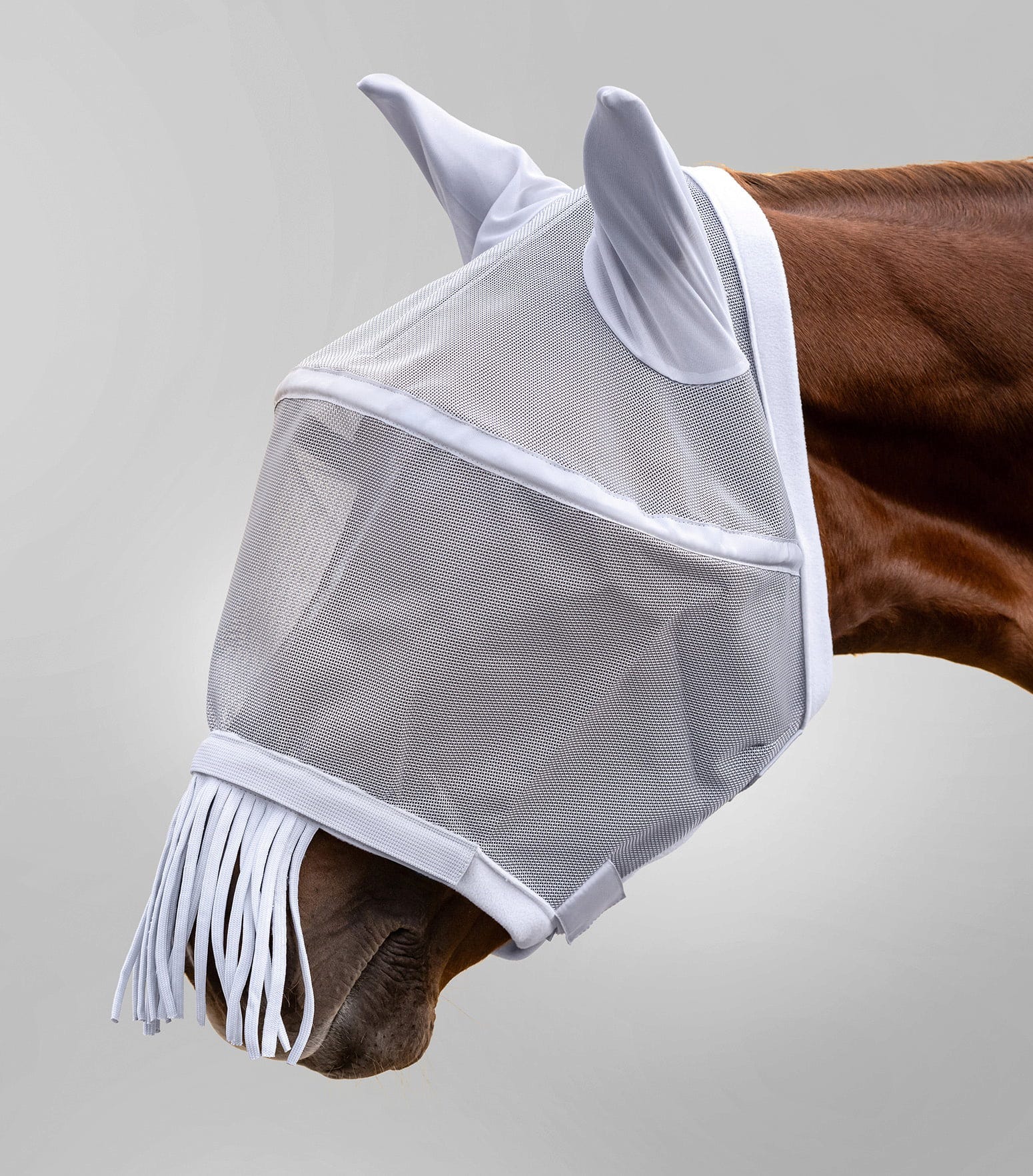 Połączenie elastycznych wstawek i miękkiej wyściółki z polaru gwarantuje idealne dopasowanie bez otarć we wszystkich punktach styku. Dzięki oddychającej ochronie uszu wentylacja pozostaje optymalna, a szerokie zapięcie na rzep ułatwia i zabezpiecza zapięcie. Dzięki tej masce decydujesz się na pełną ochronę, która gwarantuje twojemu koniowi pełną widoczność z maksymalną osłoną.