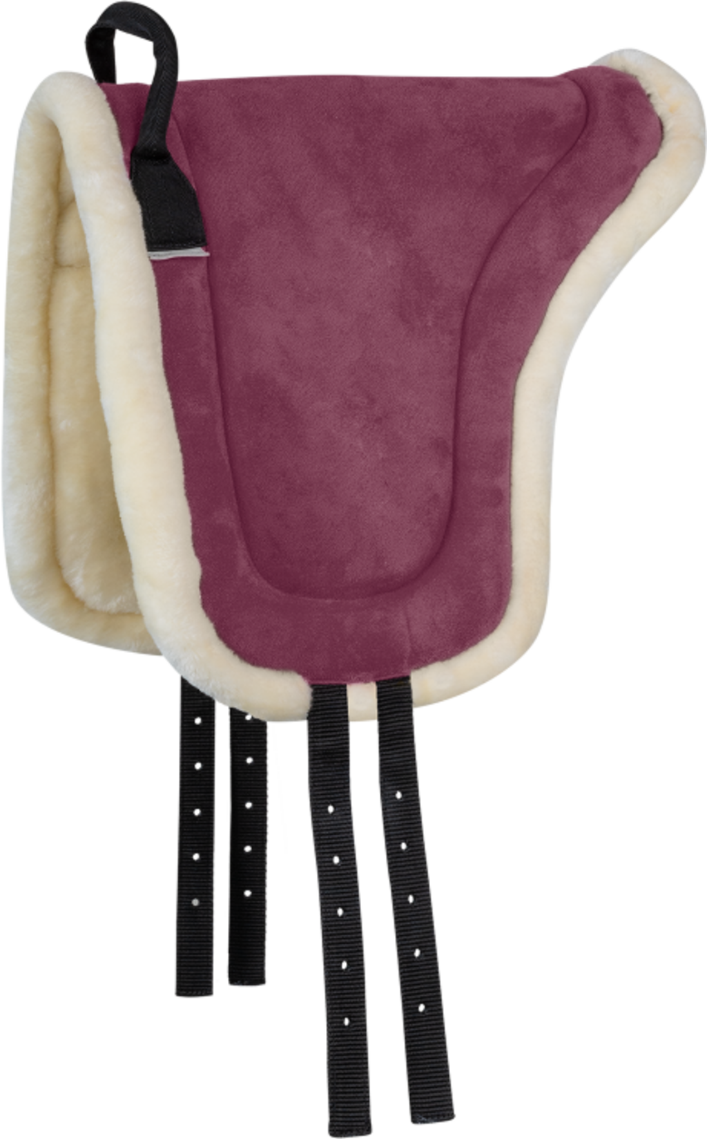 Spód jest wyposażony w przytulne syntetyczne futro, które jest delikatne dla grzbietu konia i zapewnia przyjemny rozkład nacisku. Górna strona wykonana z antypoślizgowej imitacji zamszu zapewnia bezpieczne trzymanie w siodle. Dodatkowym zabezpieczeniem jest stabilny uchwyt z przodu. Podkładka oferuje Tobie i Twojemu koniowi wysoki poziom komfortu i jest świetną alternatywą dla konwencjonalnego siodła.