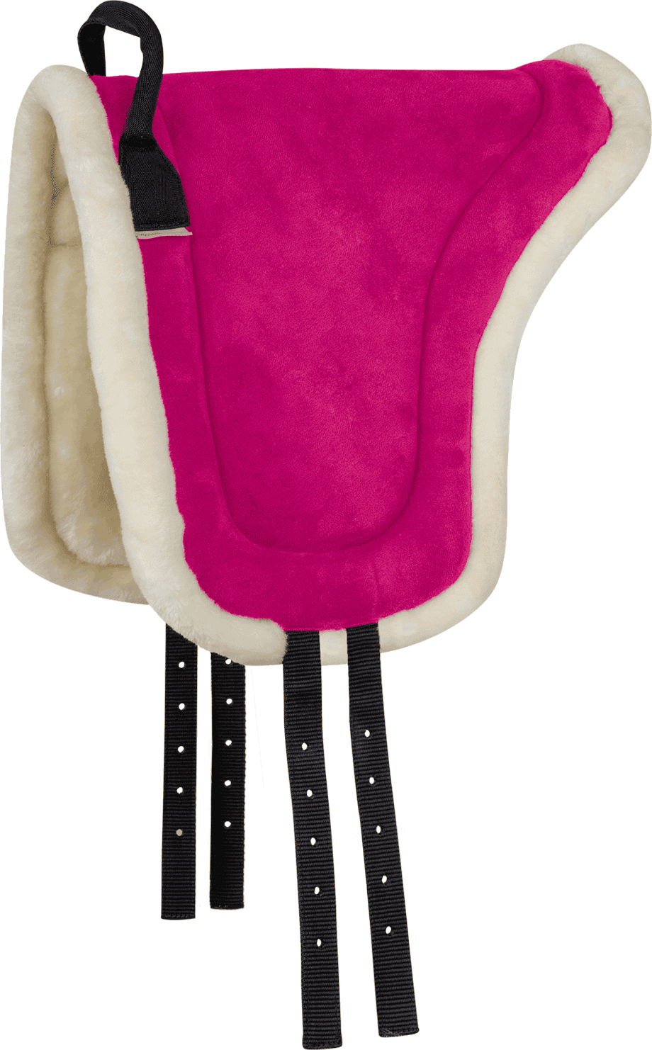 Spód jest wyposażony w przytulne syntetyczne futro, które jest delikatne dla grzbietu konia i zapewnia przyjemny rozkład nacisku. Górna strona wykonana z antypoślizgowej imitacji zamszu zapewnia bezpieczne trzymanie w siodle. Dodatkowym zabezpieczeniem jest stabilny uchwyt z przodu. Podkładka oferuje Tobie i Twojemu koniowi wysoki poziom komfortu i jest świetną alternatywą dla konwencjonalnego siodła.