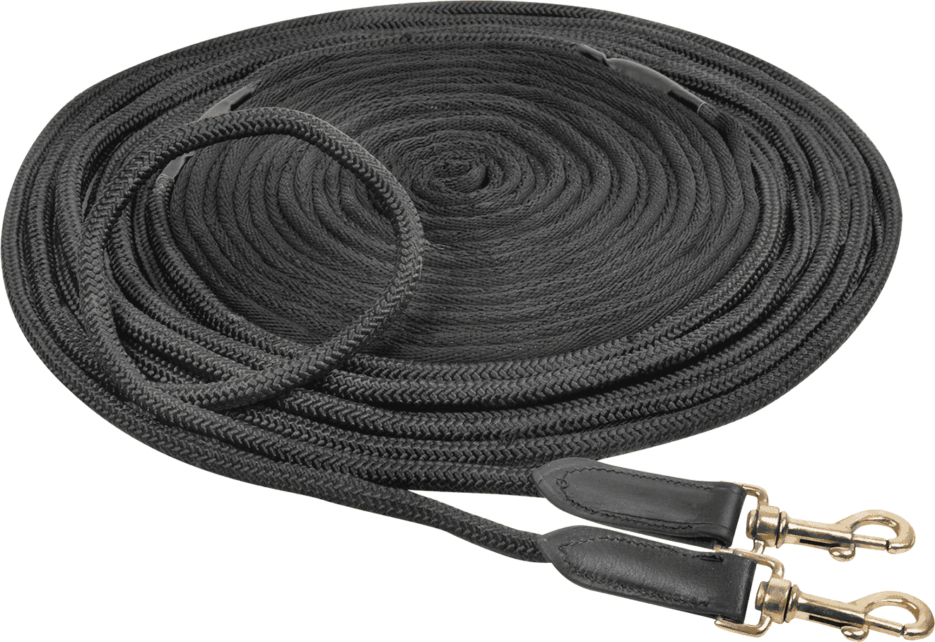 Podwójna lonża Waldhausen oferuje znacznie więcej możliwości zastosowania w porównaniu do lonży pojedynczej. Jest to kluczowy element treningu i korekty koni wierzchowych i wierzchowych, ponieważ umożliwia efektywną pracę bez ciężaru jeźdźca. Linka do lonżowania jest sprytnie zaprojektowana: Przednie części są wykonane z nylonu o okrągłym splocie, który szczególnie płynnie przesuwa się przez krążki (są one dostępne osobno).