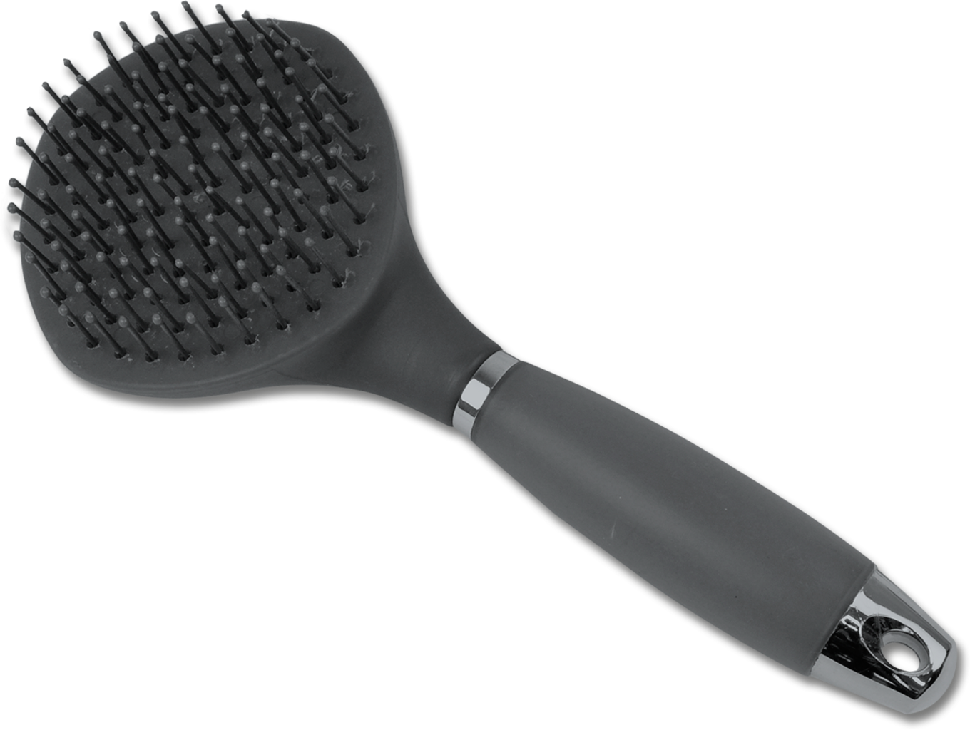 Ta pięknie zaprojektowana szczotka do długich włosów z żelową rączką zapewnia delikatną pielęgnację końskiej grzywy i ogona! Zaokrąglone plastikowe igły skutecznie rozczesują włosy, nie uszkadzając ich. Wysokiej jakości, ergonomicznie ukształtowany uchwyt żelowy idealnie pasuje do dłoni i umożliwia pracę bez zmęczenia i optymalną obsługę. Dzięki tej szczotce możesz bez wysiłku pielęgnować swojego konia i zapewnić mu lśniący wygląd!