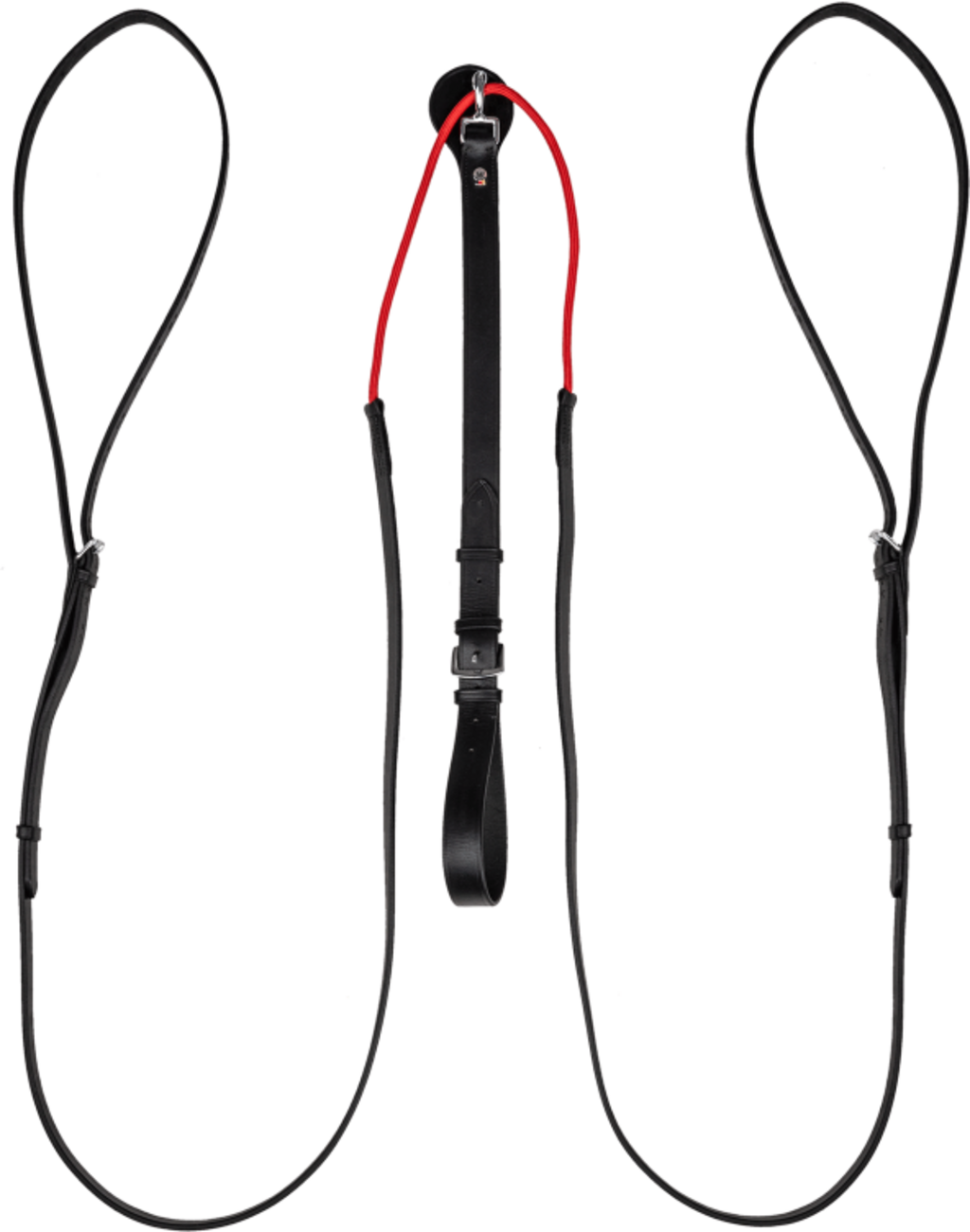 Te elastyczne i regulowane skórzane wodze trójkątne to wszechstronne narzędzie, które nadaje się zarówno do jazdy, jak i do lonżowania. System mocuje się do popręgu siodłowego lub lonżowego między przednimi nogami konia. Co wyróżnia ten system: specjalna wodza przechodzi przez rolkę prowadzącą. Stamtąd prowadzona jest przez pierścienie wędzidła (od wewnątrz na zewnątrz) z powrotem do popręgu. Rolka prowadząca umożliwia delikatne oddawanie wodzy, co sprzyja wyjątkowo przyjaznemu dla pyska wygięciu i gimnastyce konia – bez jego usztywniania.