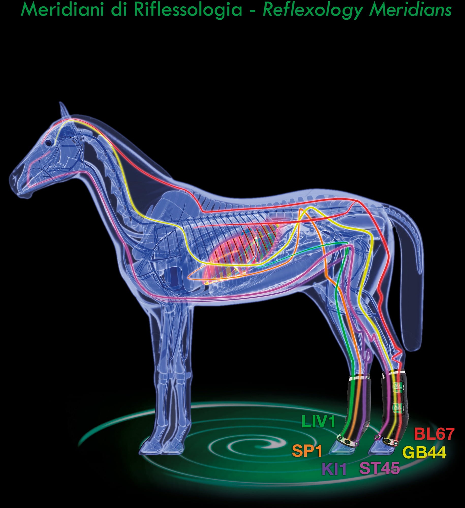 Korzystając z zasad refleksologii, które stymulują punkty refleksyjne (Ting), są one umieszczane na określonych meridianach konia. Te same punkty są wykorzystywane w fizjologii koni do akupunktury: